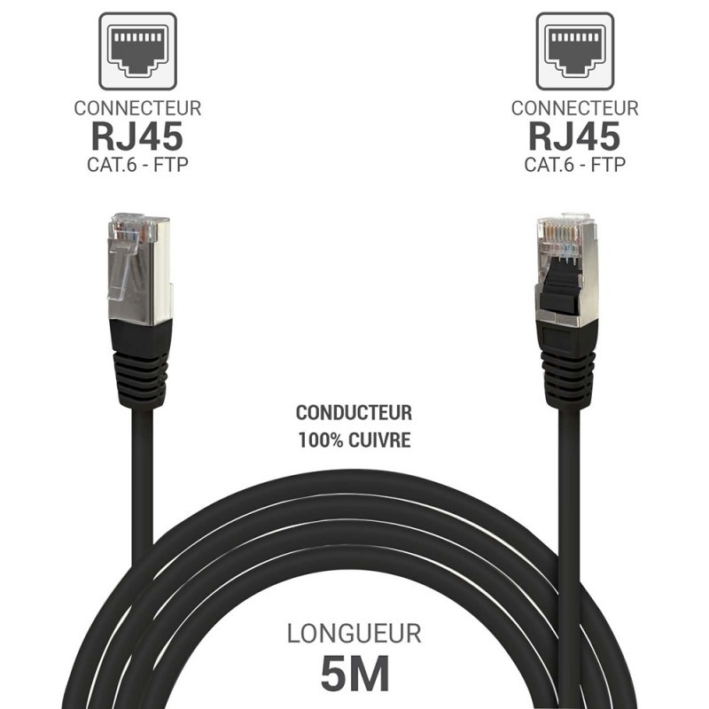 Ce câble SFTP droit 5 m Noir est idéal pour installations de CAT6.