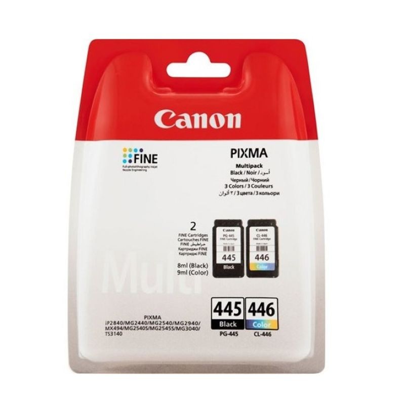 Ce Multipack Canon PG445 + CL-446 vous permettra de faire des économie, avec un prix inférieur à l'achat séparé de fournitures. Ne manquez plus de ressources ! La cartouche Canon PG-445 est le gage d'une qualité d'impression optimale quelle que soit l'utilisation de votre imprimante : texte, photo ou document. La cartouche Canon CL-446 contient des encres de couleur cyan, magenta et jaune pour vous permettre d'imprimer des documents et photos couleurs.