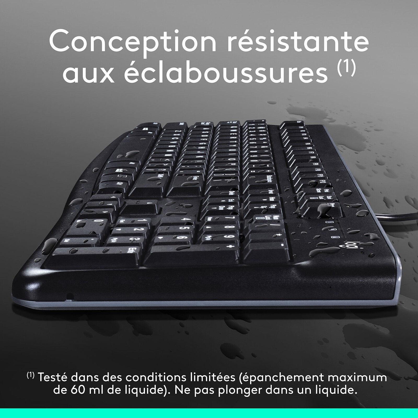 - Résiste aux éclaboussures